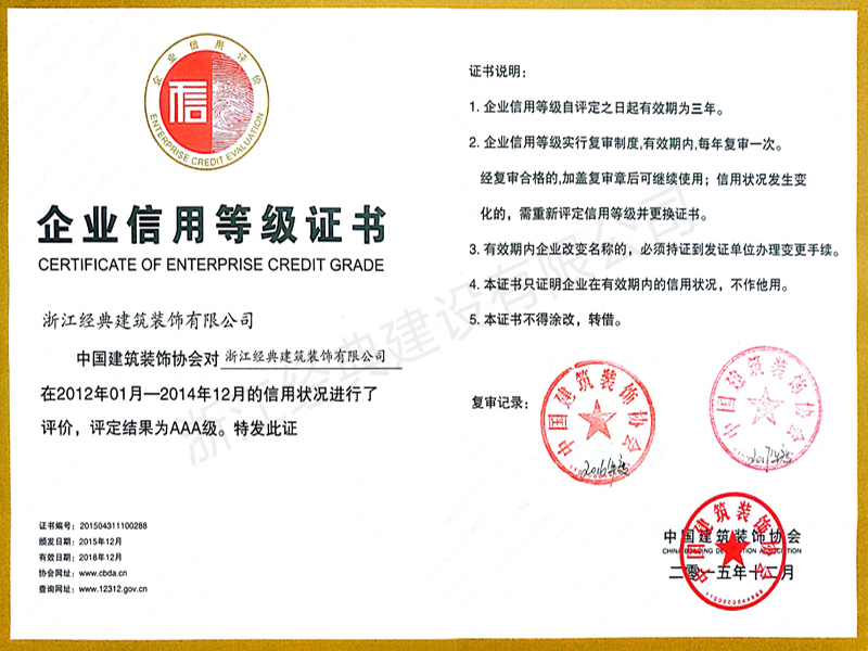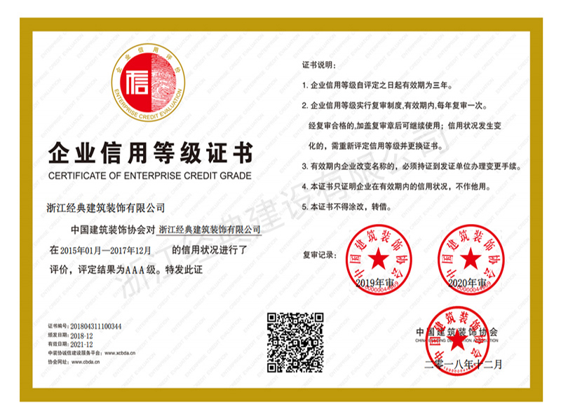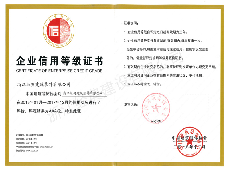 企業(yè)信用等級(jí)AAA級(jí)(2018...